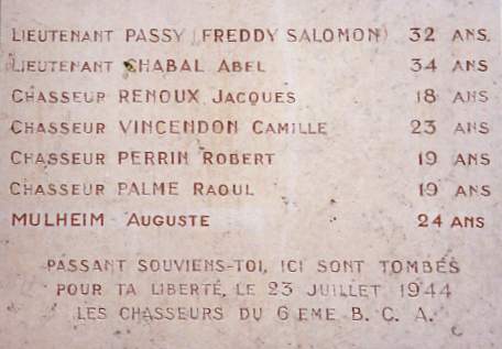A cet endroit, Renard est aussi témoin de la mort de Passy (le Lieutenant FREDDY SALOMON). Blessé mortellement, Passy à le temps de soupirer "... ça y est, ils m'ont bousillé, ma femme ne me verra plus...merde alors!...".
